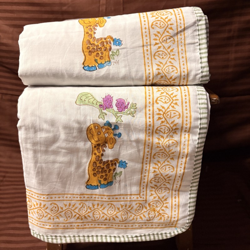 Each dohar is lovingly handcrafted using traditional Indian hand block printing techniques, where every motif is stamped by hand, reflecting the charm of age-old craftsmanship. Made from 100% pure Mul Mul cotton, it feels feather-soft against delicate baby skin and ensures breathability for all seasons.