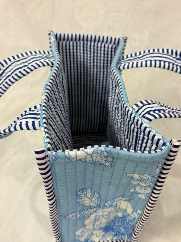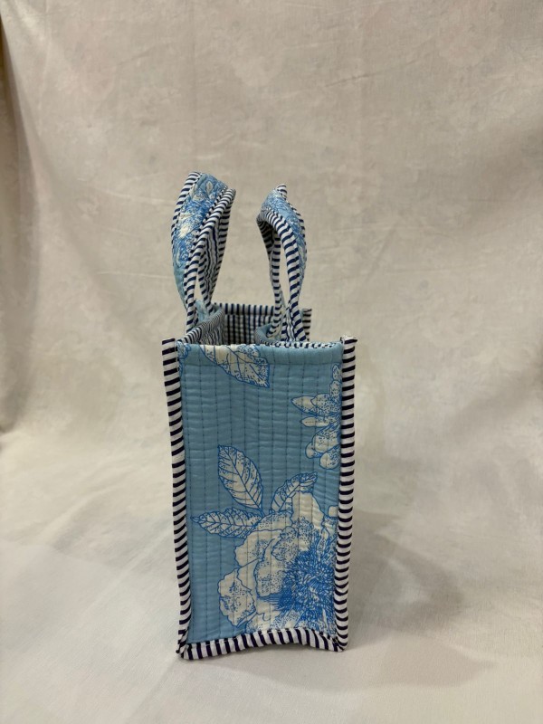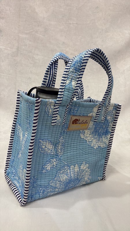 With a compact size of 25 cm (H) × 30 cm (L) × 4 cm (W), it offers ample space for carrying your essentials without feeling bulky. The sturdy cotton handles ensure a comfortable grip, while the quilted cotton lining provides a bit of structure and insulation.