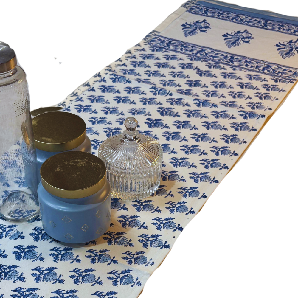 Crafted from 100% premium cotton canvas, this runner is durable yet soft to the touch, making it ideal for both everyday dining and special occasions. Each runner is hand block printed by skilled artisans in Jaipur, using age-old techniques that bring intricate patterns and vibrant charm to your home décor.