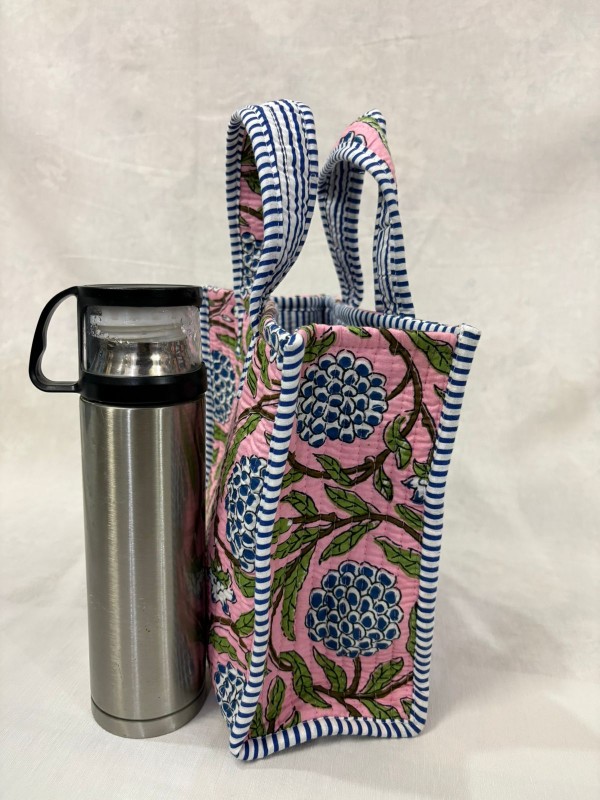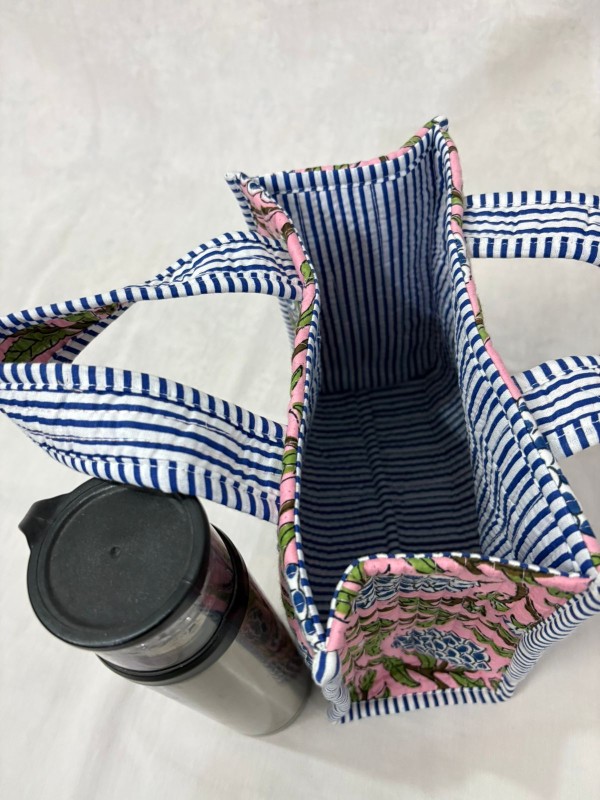 Unlike zippered or bottle-holder designs, this open lunch bag focuses on simplicity, convenience, and elegance, making it ideal for those who appreciate natural textures and handcrafted aesthetics. Whether used as a lunch tote, snack bag, or small carry bag, it adds a refined Jaipuri touch to everyday living.