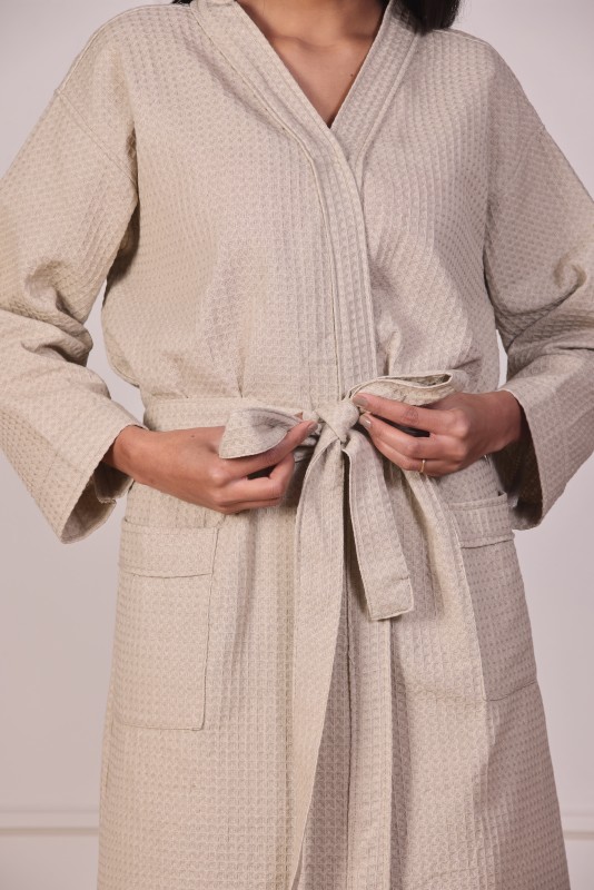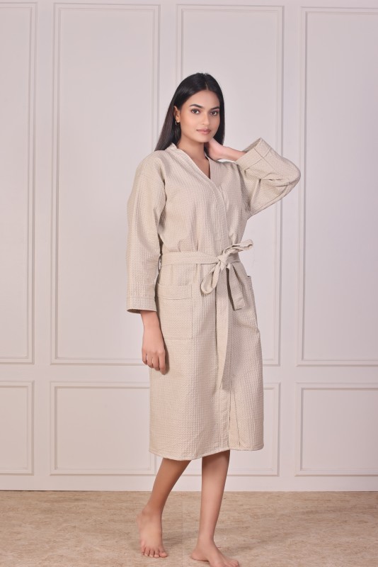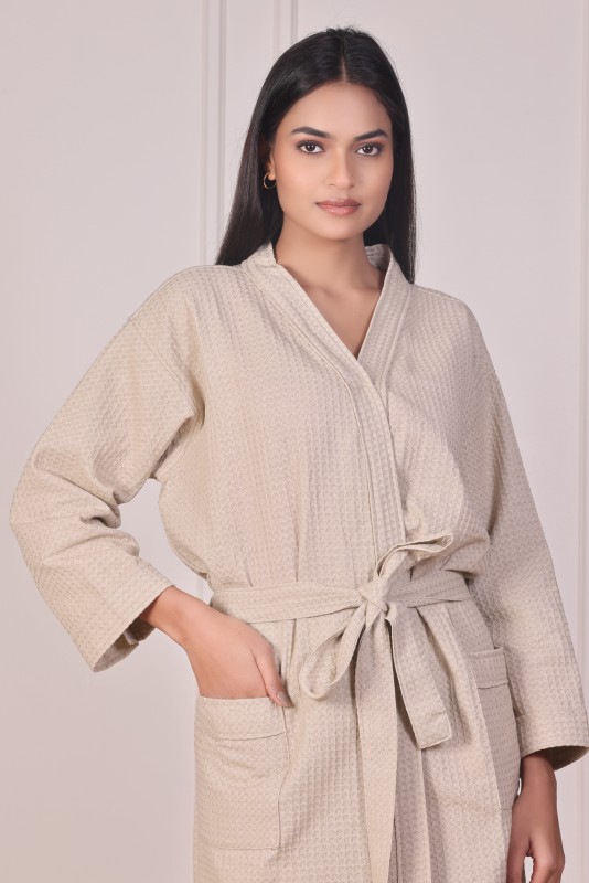 The waffle weave texture enhances water absorption while allowing air to circulate, keeping you comfortably dry after a bath or shower. Its solid color design exudes simplicity and elegance — a timeless look that suits both men and women. Designed in a free size fit, it drapes effortlessly around all body types, ensuring relaxed comfort and ease of movement.