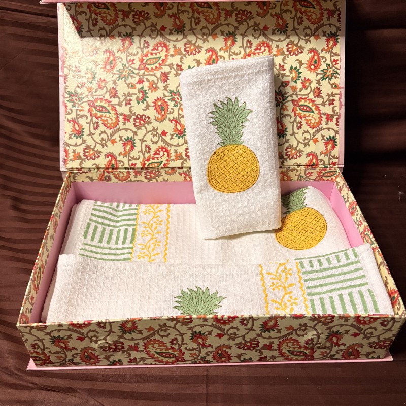 Each towel is made from 100% soft waffle cotton, known for its excellent absorbency, lightweight texture, and comfort. The fabric becomes softer with every wash, making it perfect for everyday use while maintaining its premium look and feel.