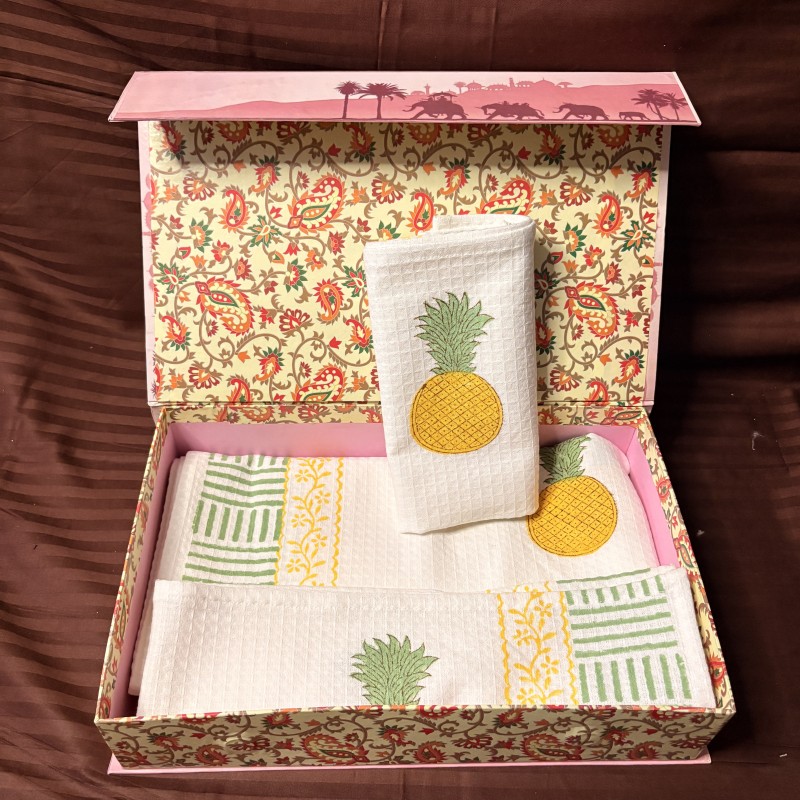 Misri Kids Handblock Printed Towel Gift Set – 1 Bath + 2 Hand Towels