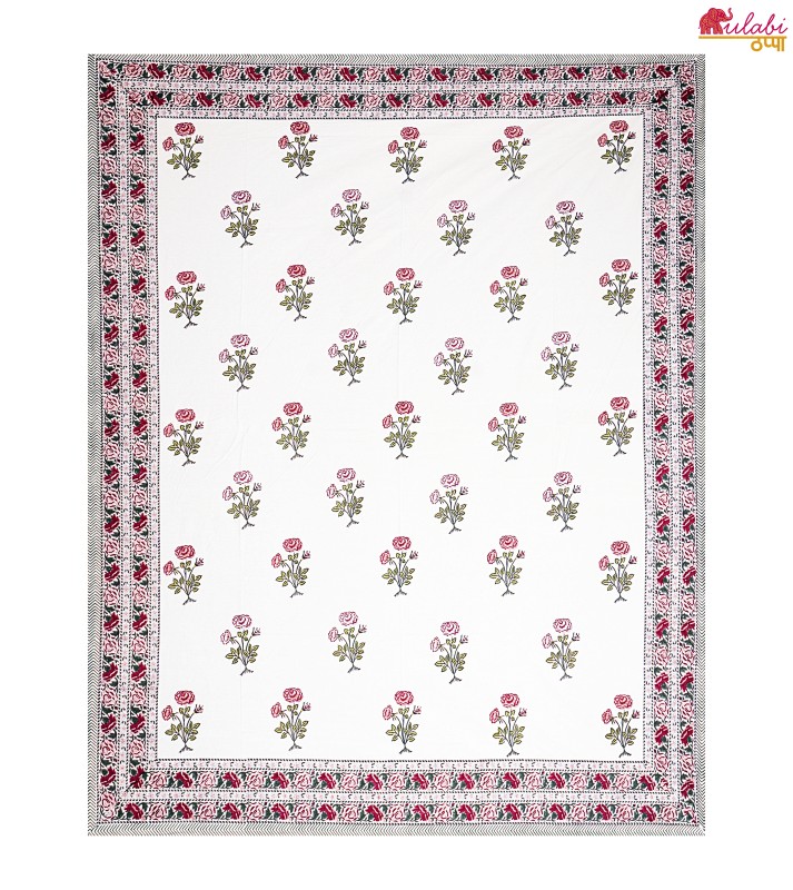 Floral Elegance Handblock Bedsheet (Double Bed)