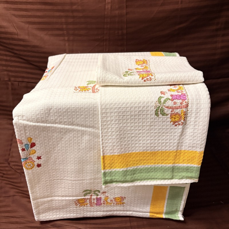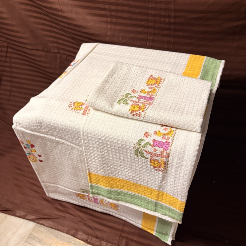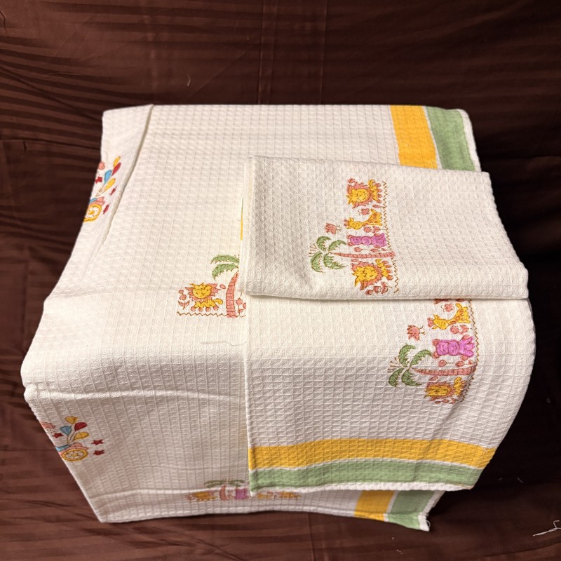 Crafted from 100% soft waffle cotton, these towels become softer with every wash, providing a cozy and absorbent experience for children. The handblock printing technique ensures that each motif reflects authentic heritage, combining color, pattern, and quality in a delightful design.