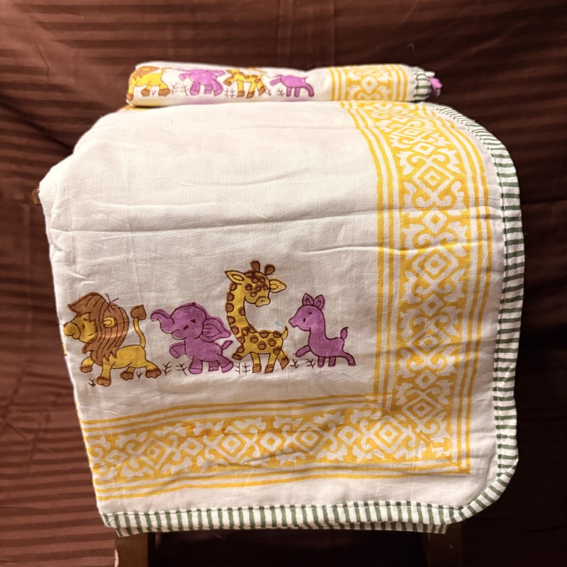 Each dohar is lovingly handcrafted using traditional Indian hand block printing techniques, where every motif is stamped by hand, reflecting the charm of age-old craftsmanship. Made from 100% pure Mul Mul cotton, it feels feather-soft against delicate baby skin and ensures breathability for all seasons.