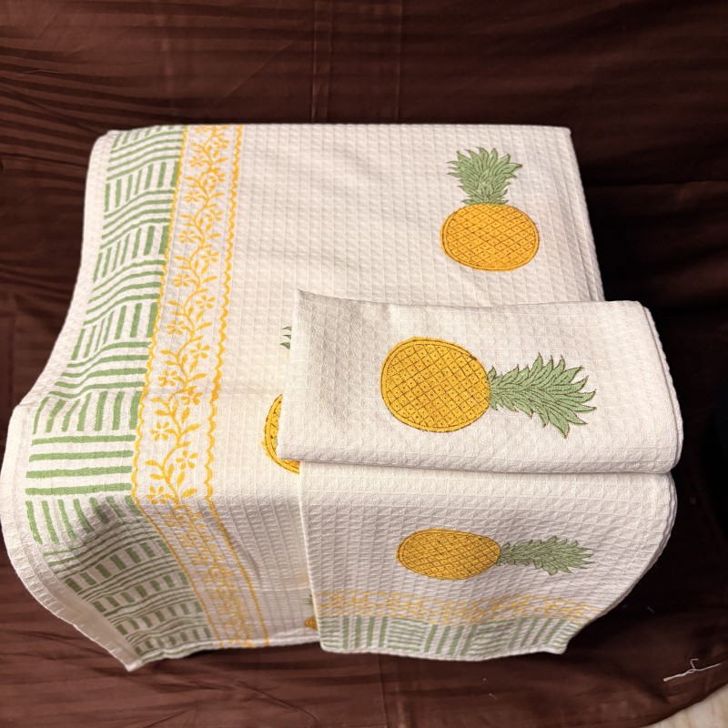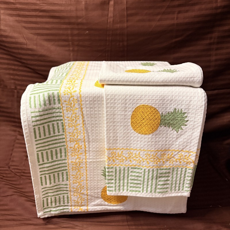 Crafted from 100% soft waffle cotton, these towels become softer with every wash, providing a cozy and absorbent experience for children. The handblock printing technique ensures that each motif reflects authentic heritage, combining color, pattern, and quality in a delightful design.