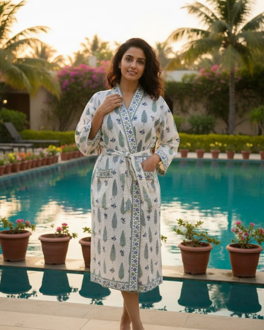 Experience unmatched comfort and elegance with Gulabi Thappa’s Waffle Cotton Hand Block Printed Unisex Bathrobe, crafted from premium Madurai high-absorption waffle cotton. Designed for everyday relaxation, this robe combines traditional Jaipuri hand block printing with modern functionality, offering a soft, breathable, and quick-drying experience after every bath or shower.