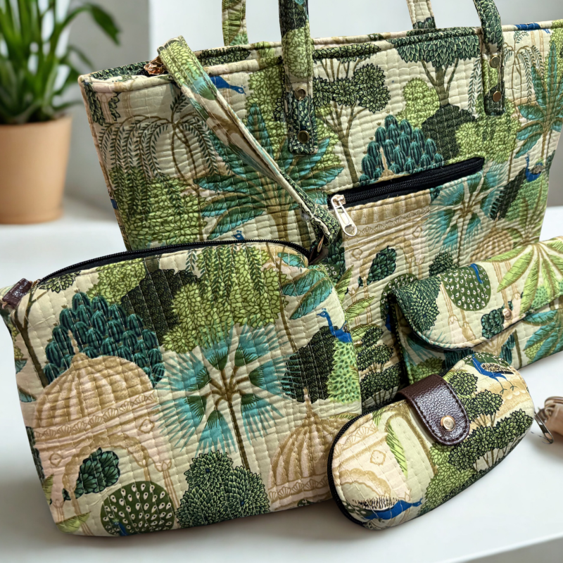 Upgrade your style with the Gulabi Thappa 4-in-1 Handbag Set, a beautifully handcrafted collection that blends tradition-inspired prints with modern functionality. Designed for women who want one set for every occasion, this combo is versatile, durable, and a true style statement.