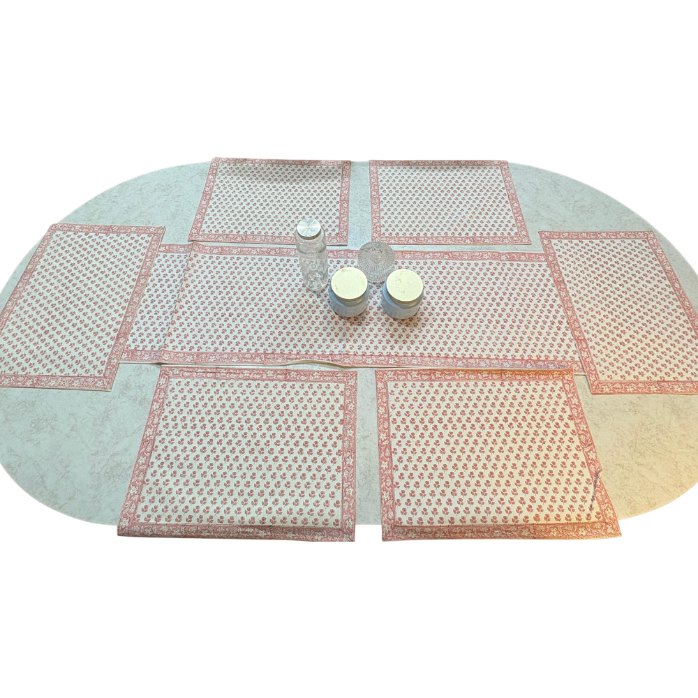 Expertly hand block printed by skilled Jaipur artisans, each piece in this set showcases intricate patterns inspired by traditional Indian design. Made from 100% premium cotton canvas, the fabric is soft yet durable, ensuring long-lasting use and a luxurious texture that enhances any dining setting.