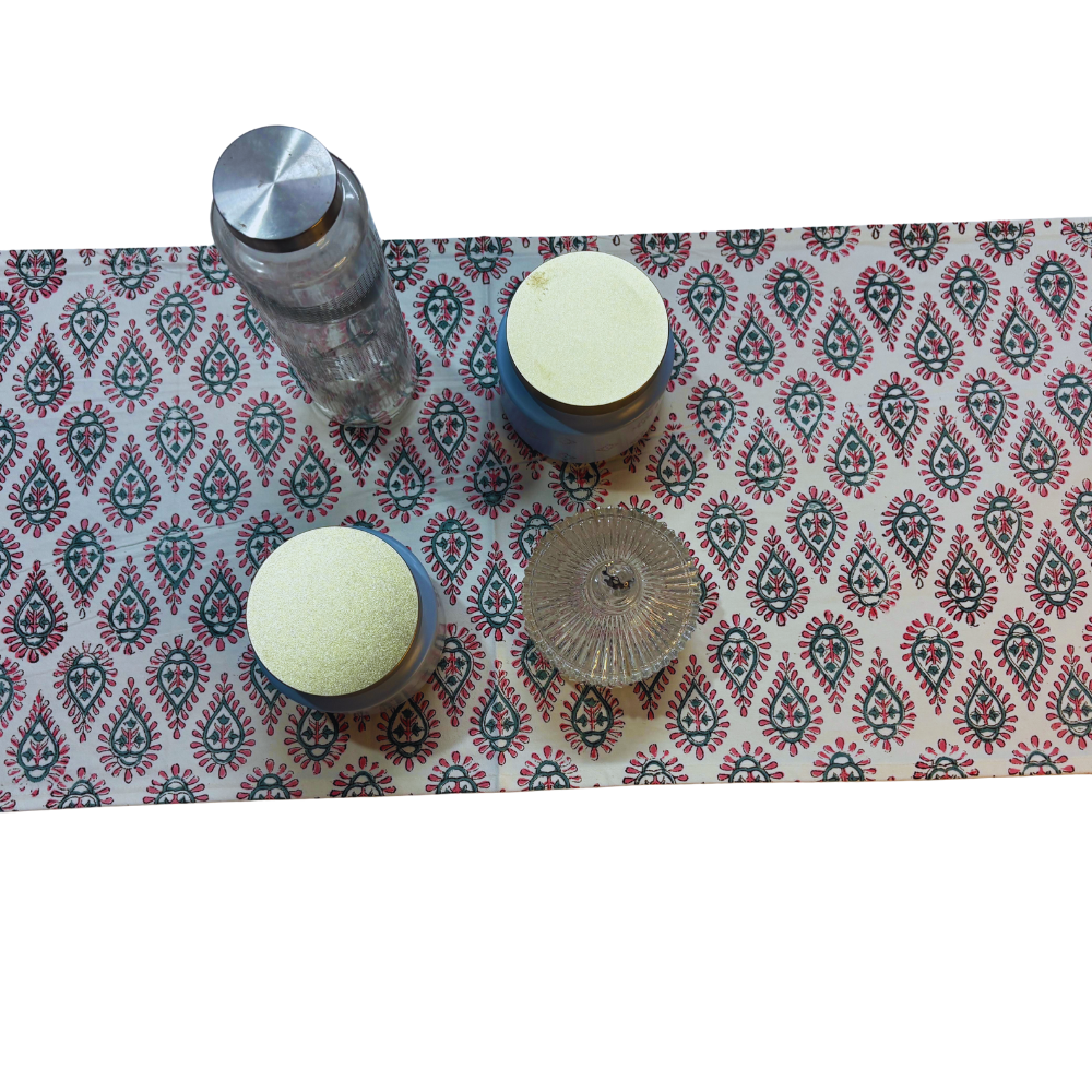 Crafted from 100% premium cotton canvas, this runner is durable yet soft to the touch, making it ideal for both everyday dining and special occasions. Each runner is hand block printed by skilled artisans in Jaipur, using age-old techniques that bring intricate patterns and vibrant charm to your home décor.