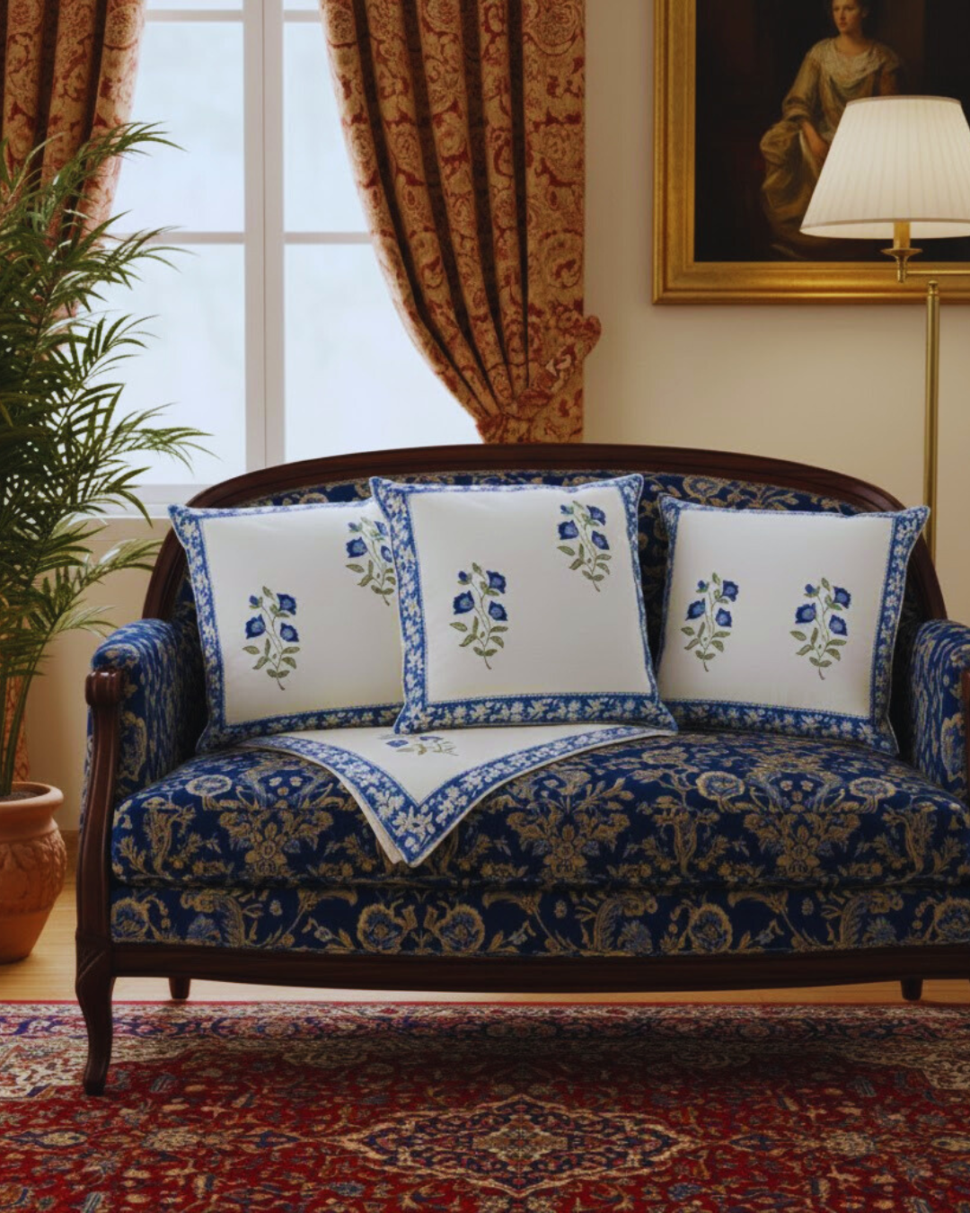 • Set of 5 Cushion Covers – Same elegant hand block print for a cohesive look.